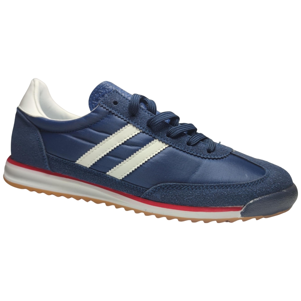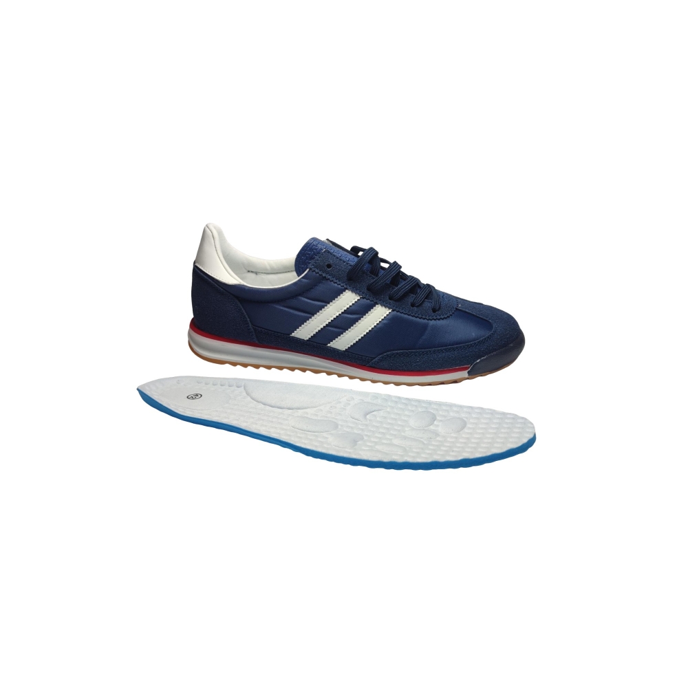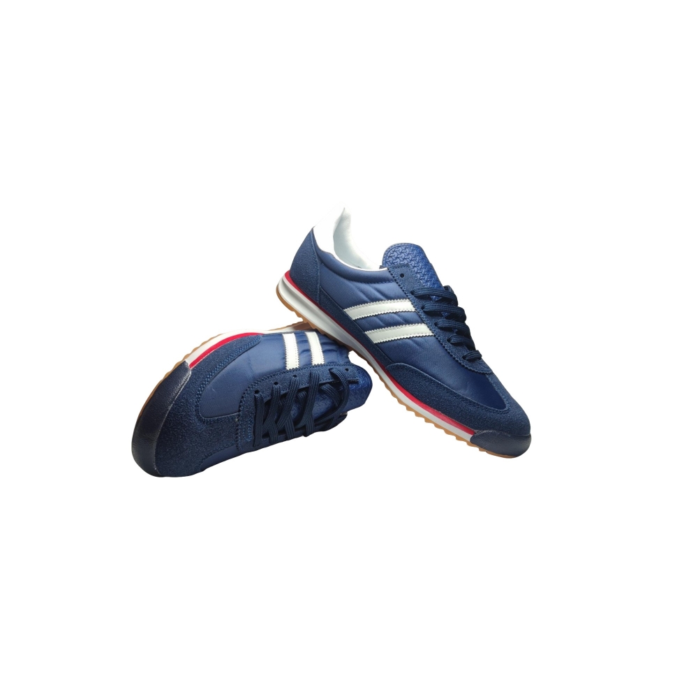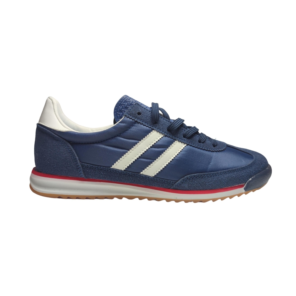 Color elegante y versátil: Azul marino profundo con detalles en blanco crema y una discreta línea roja en la entresuela, que aportan contraste y un acabado dinámico.